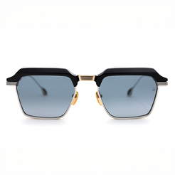 A suave combination of plant-based acetate and beta titanium. Sophisticated, with a captivating display of contrasting volumes and textures, the acetate upper eyerim cradles the lower titanium rim. Beautifully detailed and quietly refined.