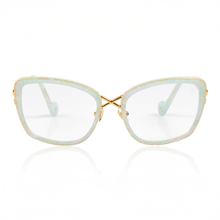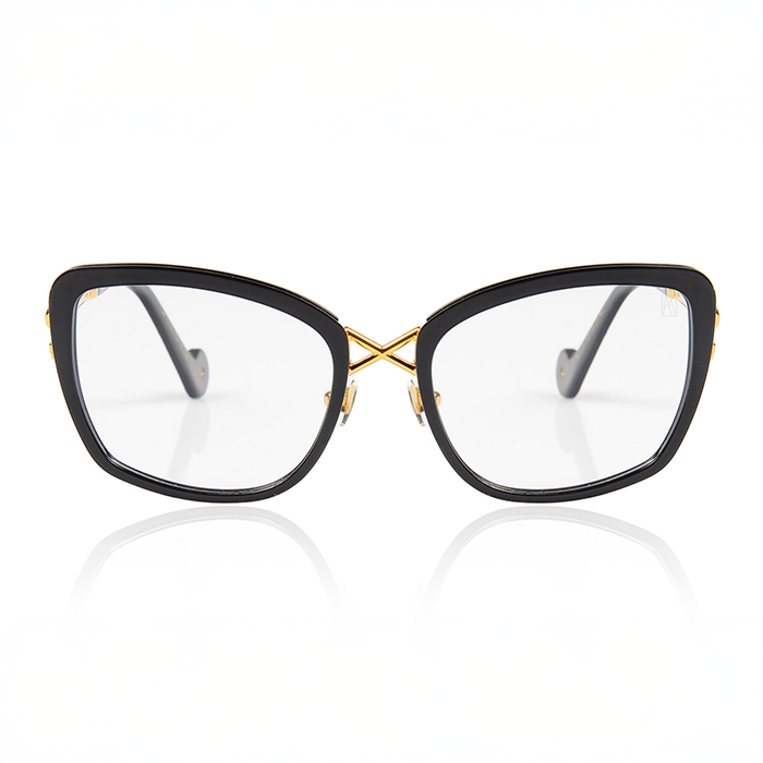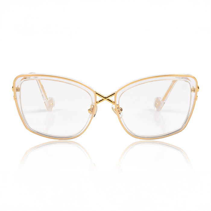 Strong, bold cat-eye frames with sensuously curved 24k gold-plated temples and the namesake gold cross embellish the bridge. As part of the exclusive 2019 collection, the La Croix frames are in extremely limited quantity, each part of the collection is only available in 20-100 pieces worldwide.