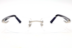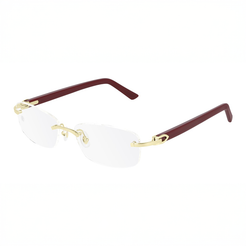As one of the most iconic jewelry brands in the world, Cartier represents pure luxury. These 24k gold-plated rectangular eyeglasses feature rimless lenses and enriched temples with iconic C Décor detail, and Double C Décor signature on the nose pads.