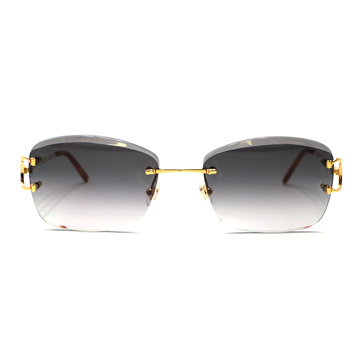 As one of the most iconic styles within the Cartier collection, this Signature C de Cartier custom style features luxurious gray gradient lenses with the "Double C" aesthetic. This 24k gold-plated style features the Cartier logo on the temples and burgundy temple tips, complemented by the iconic golden Cartier logo.