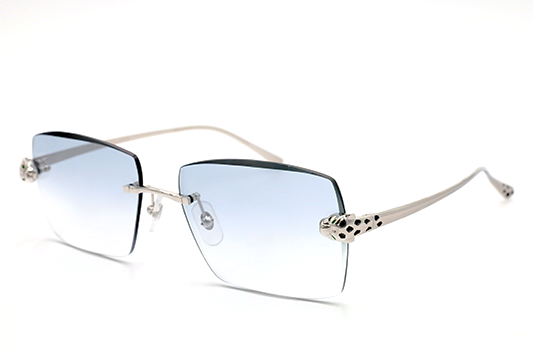 As one of the most iconic jewelry brands in the world, Cartier represents pure luxury. These platinum plated rectangular sunglasses feature tints from a lighter to darker shade, innovative three-dimensional Panthère heads on the front, with hand-made enamel spots on both the front and tips of the temples.