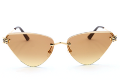 As one of the most iconic jewelry brands in the world, Cartier represents pure luxury. These 24k gold-plated cat-eye sunglasses feature tints from a lighter to darker shade, innovative three-dimensional Panthère heads with geometric facets enriched by enamel details, and acetate temple tips.