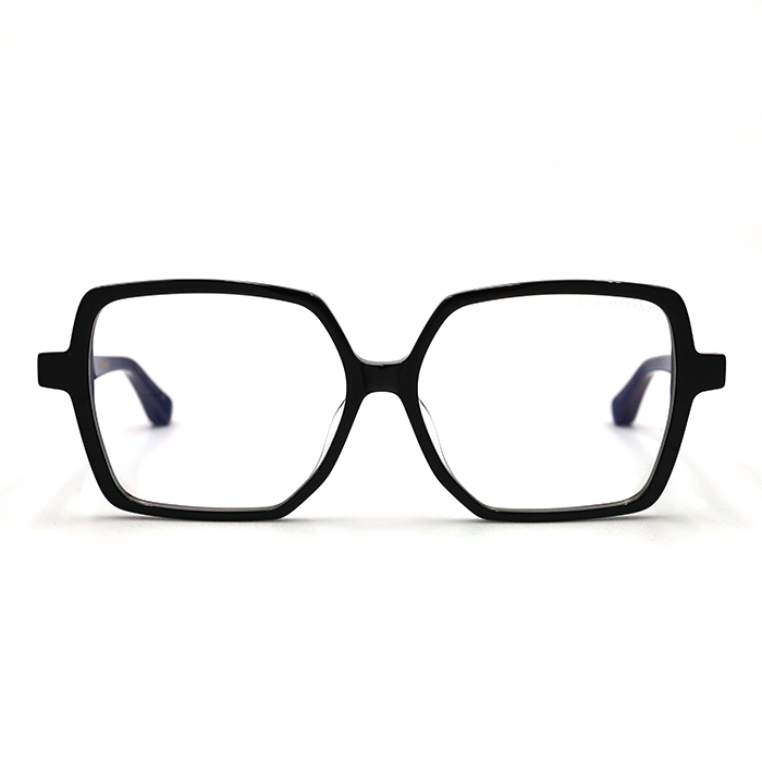 A bold, flared, square shape in high-quality Japanese acetate. Geometric and contemporary, this optical frame captures a sense of feminine strength. The custom 4D wirecore peeks through the acetate, giving a glimpse at the underlying technical prowess.