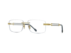 Suave and sophisticated, this rimless piece features FRED's iconic double cable design in beautiful two-toned plated metals. Godron detailing serves as the hinge, with the double cable serves as the temples, before the frame gracefully concludes in black acetate temple tips. FG50035U16W