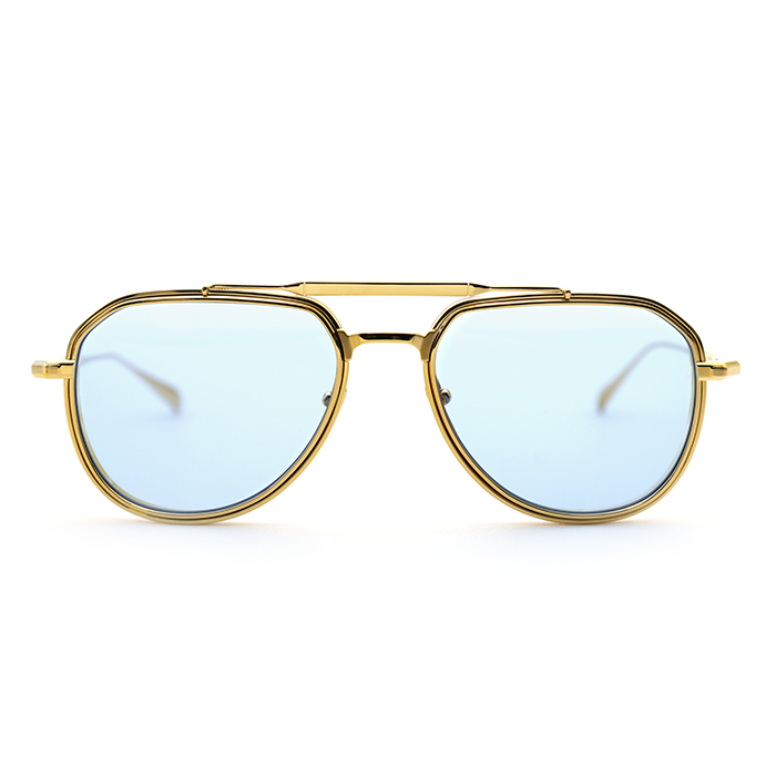 These 70s-inspired aviators feature a striking dual-tone design and distinctive lens-rim inserts. Intricate bridge and temple detailing, paired with JMM’s signature hairline embellishments, create a refined yet commanding silhouette.