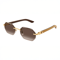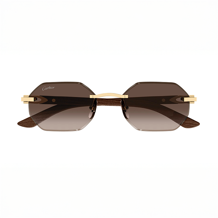 Elegant temples in wood or horn are adorned with the iconic C Décor detailing.  The slender, octagonal shape gives a geometric and contemporary feel. The Cartier logo plaque embellishes the temple tips, complementing the other precious finish touches.