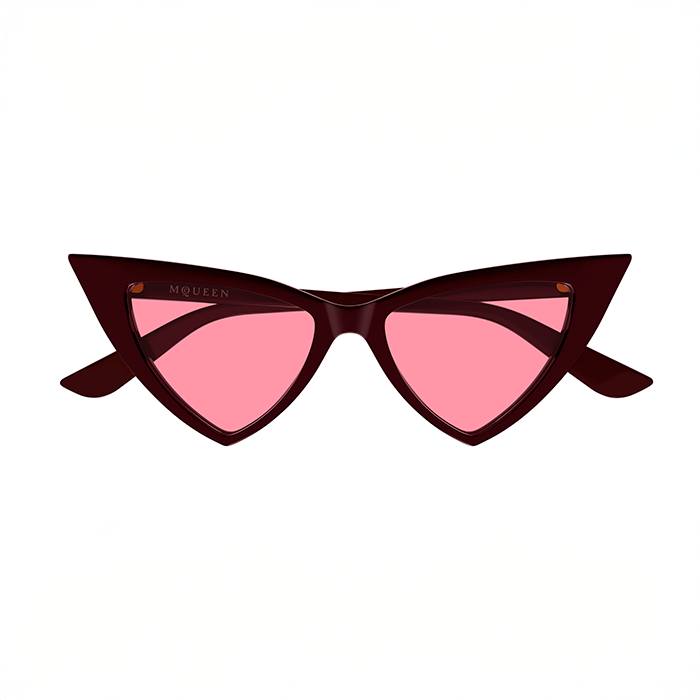 A daring interpretation of the classic cat-eye shape with exhilarating edge. The sharp, geometric front is perfectly balanced by the slender, gently curving temples. The classic McQueen logo embellishes each temple side.