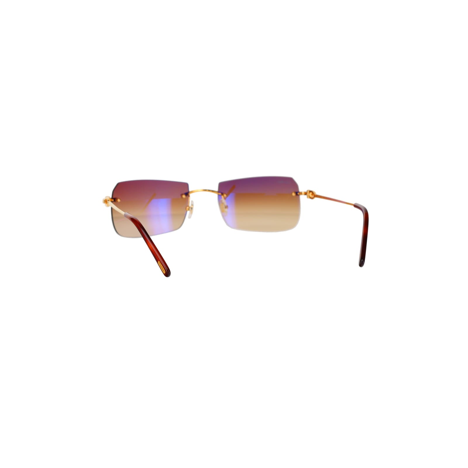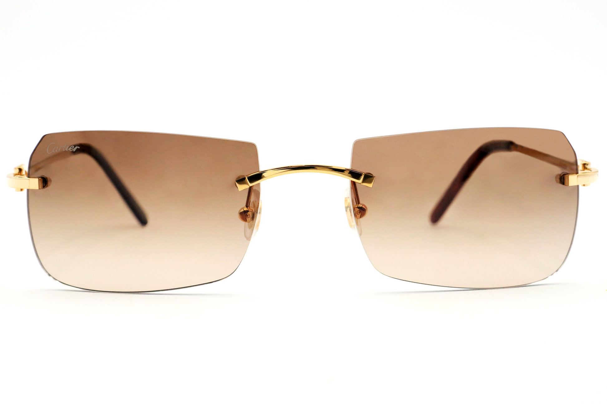 As one of the most iconic jewelry brands in the world, Cartier represents pure luxury. These 24k gold-plated rectangular sunglasses feature a golden brown tint, temples with the Cartier logo, and adjustable nose pads with a Double C Décor signature.