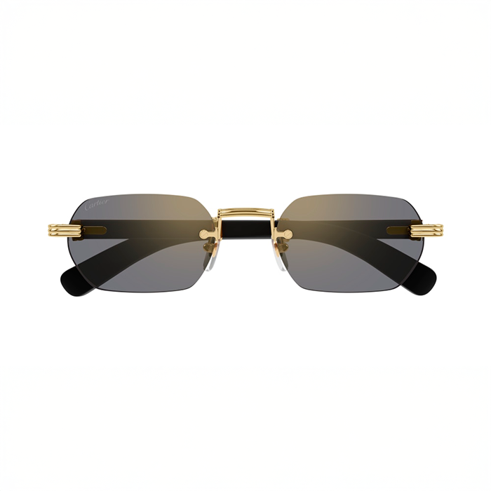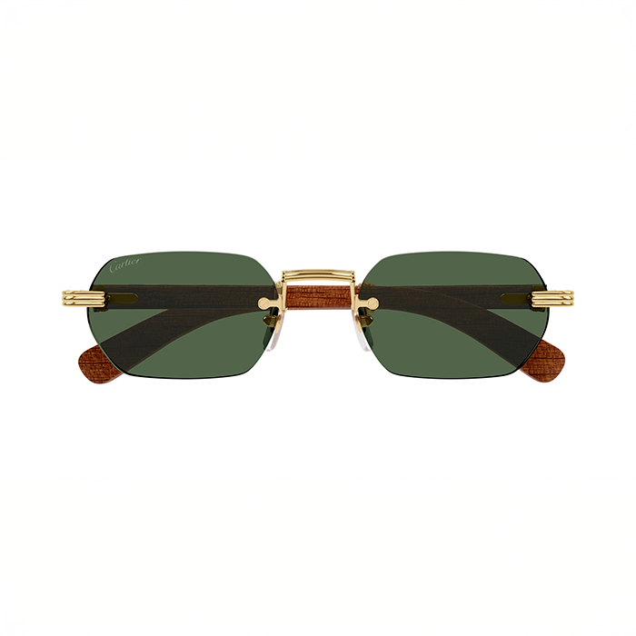 A reimagining of the Première de Cartier collection in wood or horn inspired by vintage Cartier pieces. The contemporary rectangular sun rimless design is combined with horn or wood temples and refined by the iconic C Décor and Godron detailing. The double C Décor logo plaque adorns the temple tips as a sophisticated signature.