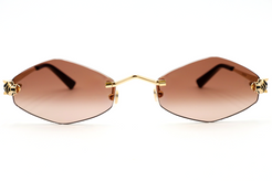 As one of the most iconic jewelry brands in the world, Cartier represents pure luxury. These 24k gold-plated rectangular sunglasses feature tints from a lighter to darker shade, innovative three-dimensional Panthère heads with geometric facets and enriched by enamel details, and acetate temple tips.
