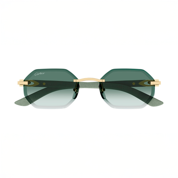 Elegant temples in wood or horn are adorned with the iconic C Décor detailing. The slender, octagonal shape gives a geometric and contemporay feel. The Cartier logo plaque embellishes the temple tips, complementing the other precious finish touches.