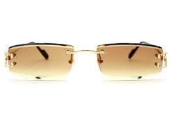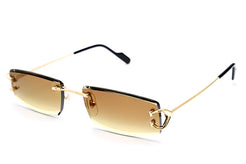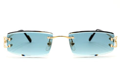 An easy-to-wear, slender rectangle design with stunning, colored lenses. Each lens is embellished with a bevel treatment to imbue an elegant, modern feel. Acetate temple tips decorated with Cartier logo ensure comfortability for the wearer while the precious finish in gold elevates this already luxurious piece.