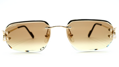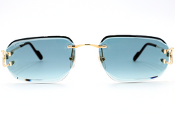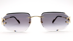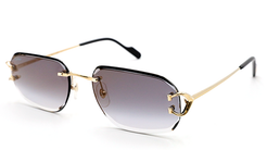 24k gold-plated rimless rectangular sunglasses, enriched by the iconic C Dècor details and a contemporary design.  Colorful lenses are given an elegant bevel treatment that enhances a dynamic gleam.  Acetate temple tips ensure all-day comfort while the Cartier logo on them gives a wonderful signature for a stunning piece.
