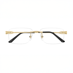 A contemporary, rimless style featuring the interlocking metal C Décor on the hinge. Subtle and sophisticated, this piece is the perfect finishing touch for any look. Black acetate temple tips provide comfort and style to this 24k gold-plated frame.