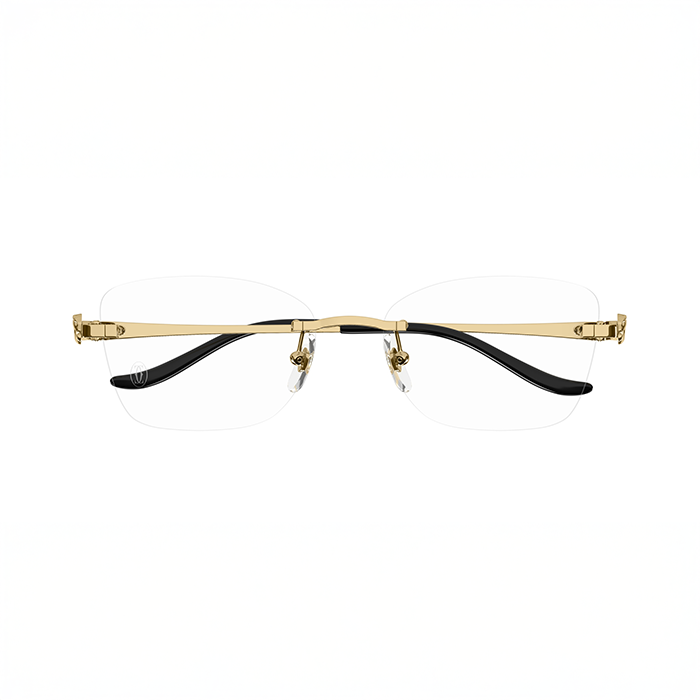 A beloved interpretation of the bi-dimensional Panthère in metal. The Panthère body races along the temple towards the hinge, and the temple tips act as its tail, curling gracefully in this versatile, feminine piece. Timlessly elegant.