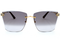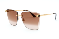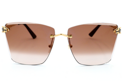 As one of the most iconic jewelry brands in the world, Cartier represents pure luxury. These 24k gold-plated rectangular sunglasses feature tints from a lighter to darker shade, innovative three-dimensional Panthère heads with geometric facets and enriched by enamel details, and acetate temple tips.