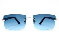As one of the most iconic jewelry brands in the world, Cartier represents pure luxury. These 24k gold-plated rectangular sunglasses feature a darker blue shade, temples with iconic C Décor detail, and black acetate and Double C Décor signature on the nose pads.