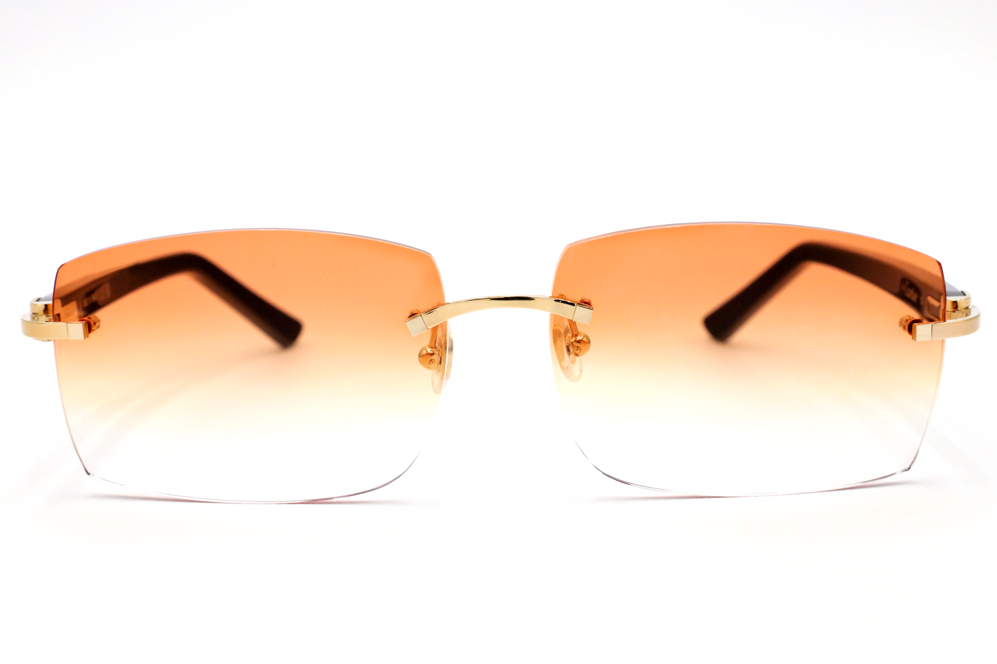 As one of the most iconic jewelry brands in the world, Cartier represents pure luxury. These 24k gold-plated rectangular eyeglasses feature rimless lenses and enriched temples with iconic C Décor detail, and Double C Décor signature on the nose pads.