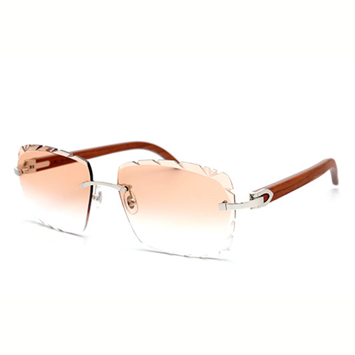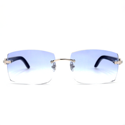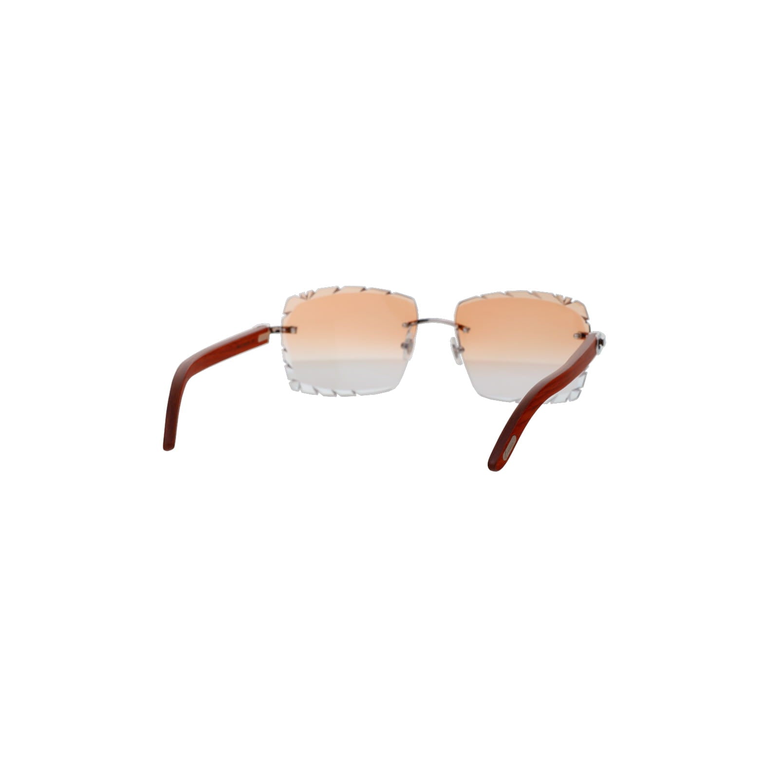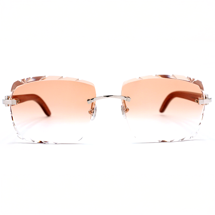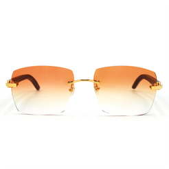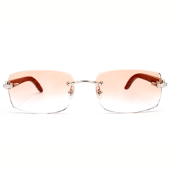 A contemporary rimless construction of ten thin layers of wood, laminated to maximum strength. The wooden temples are embellished by C Décor in precious finishes, providing even further elegant detailing. Temples are innovatively crafted with flexible hinges with invisible screws and Double C Décor signature on the nose pads.