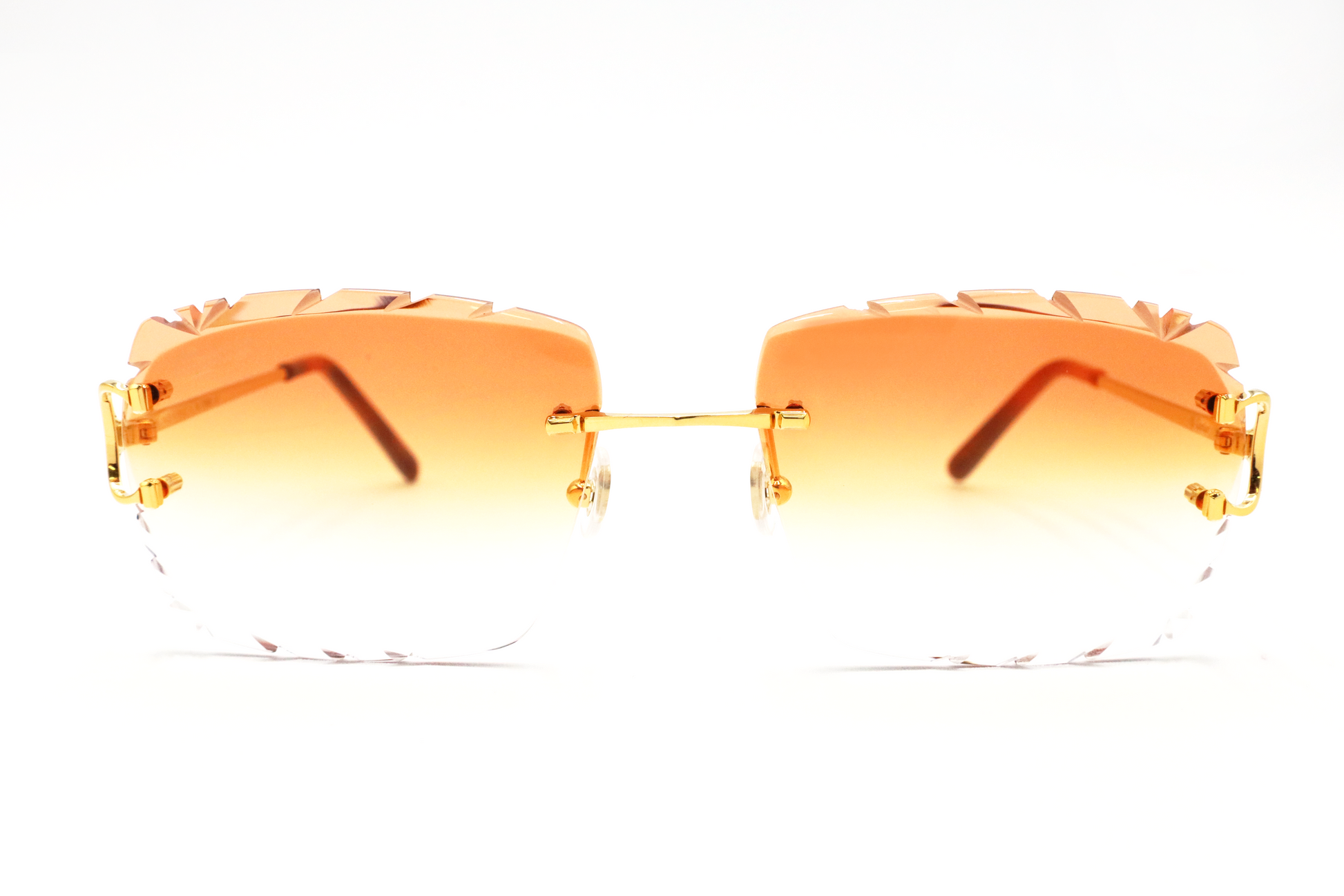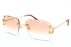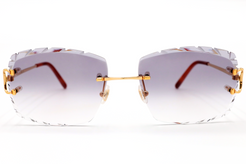 As one of the most iconic styles within the Cartier collection, this Signature C de Cartier custom style features luxurious fashion-tinted lenses with the "Double C" aesthetic. This platinum or 24k-plated gold style features the Cartier logo on the temples and black or burgundy temple tips, complemented by the iconic golden Cartier logo.