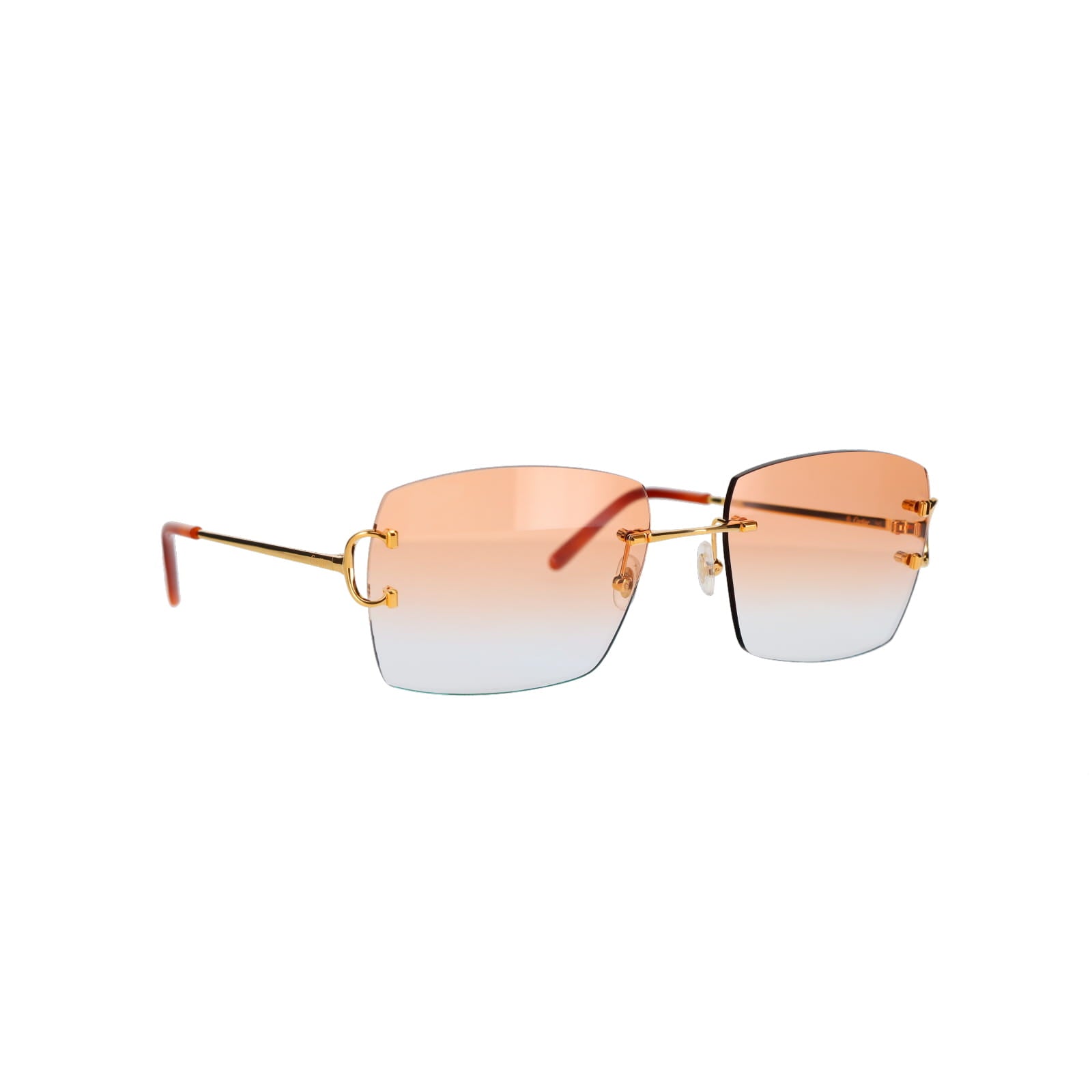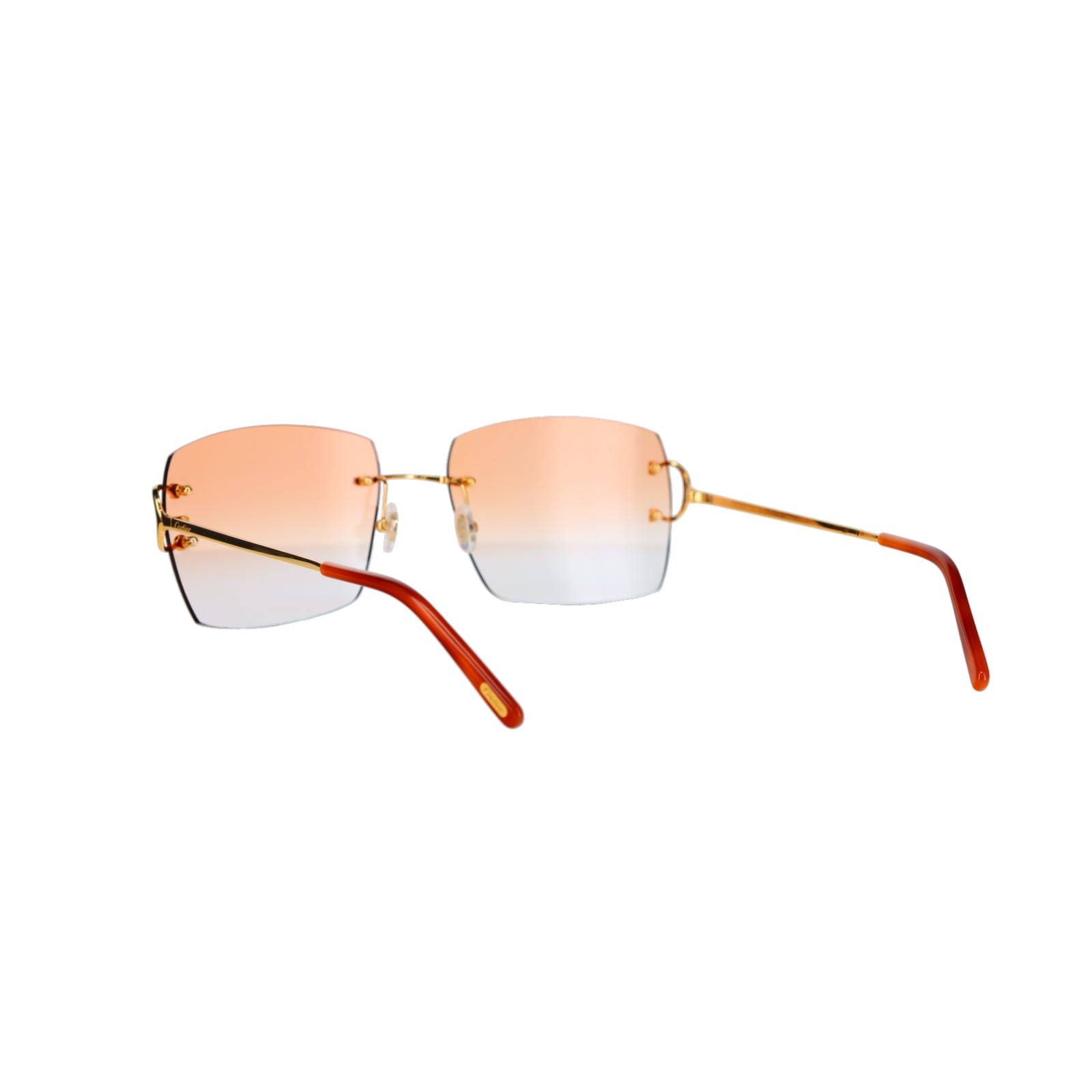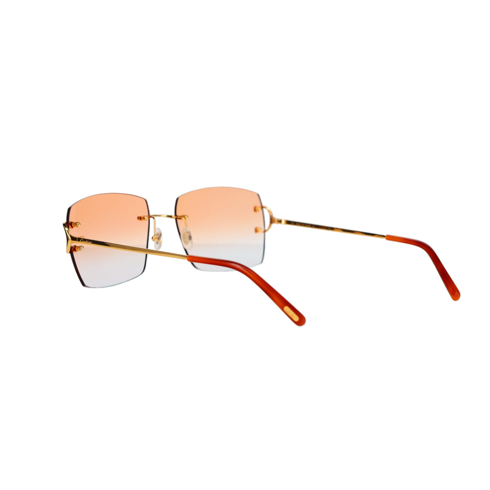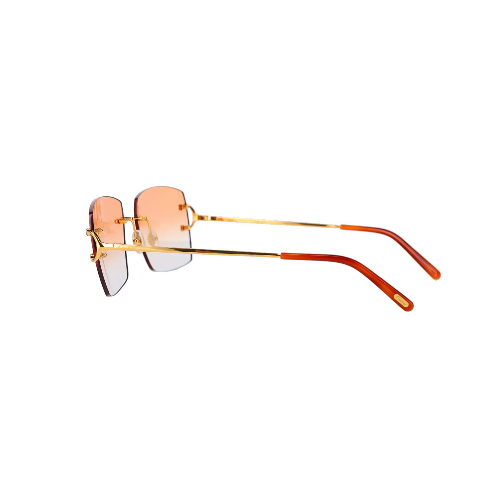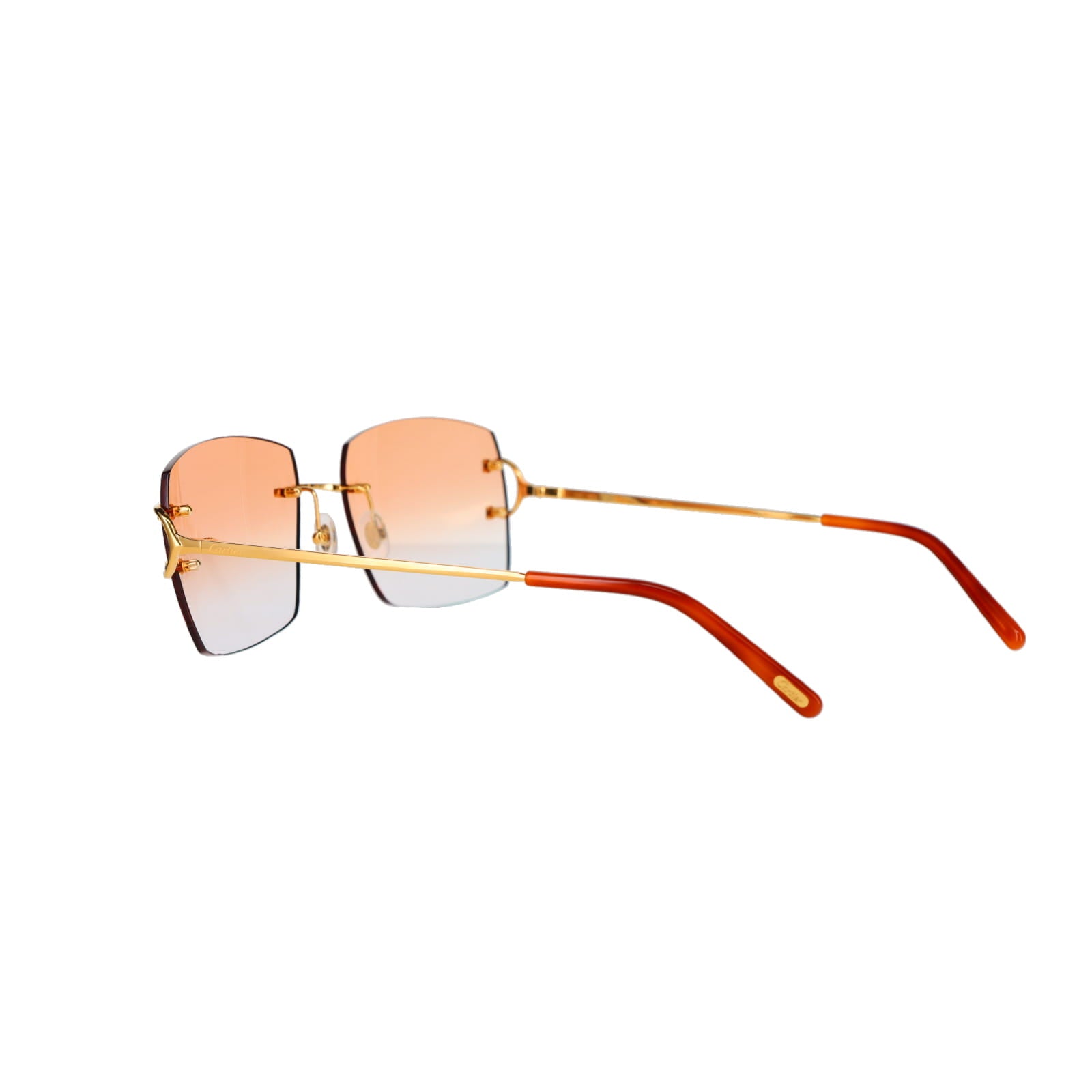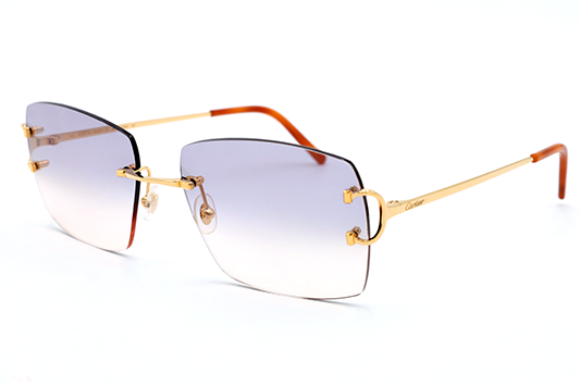 As one of the most iconic styles within the Cartier collection, this Signature C de Cartier custom style features luxurious fashion-tinted lens with the "Double C" aesthetic. This platinum-plated style features the Cartier logo on the temples and black or burgundy temple tips, complemented by the iconic golden Cartier logo.