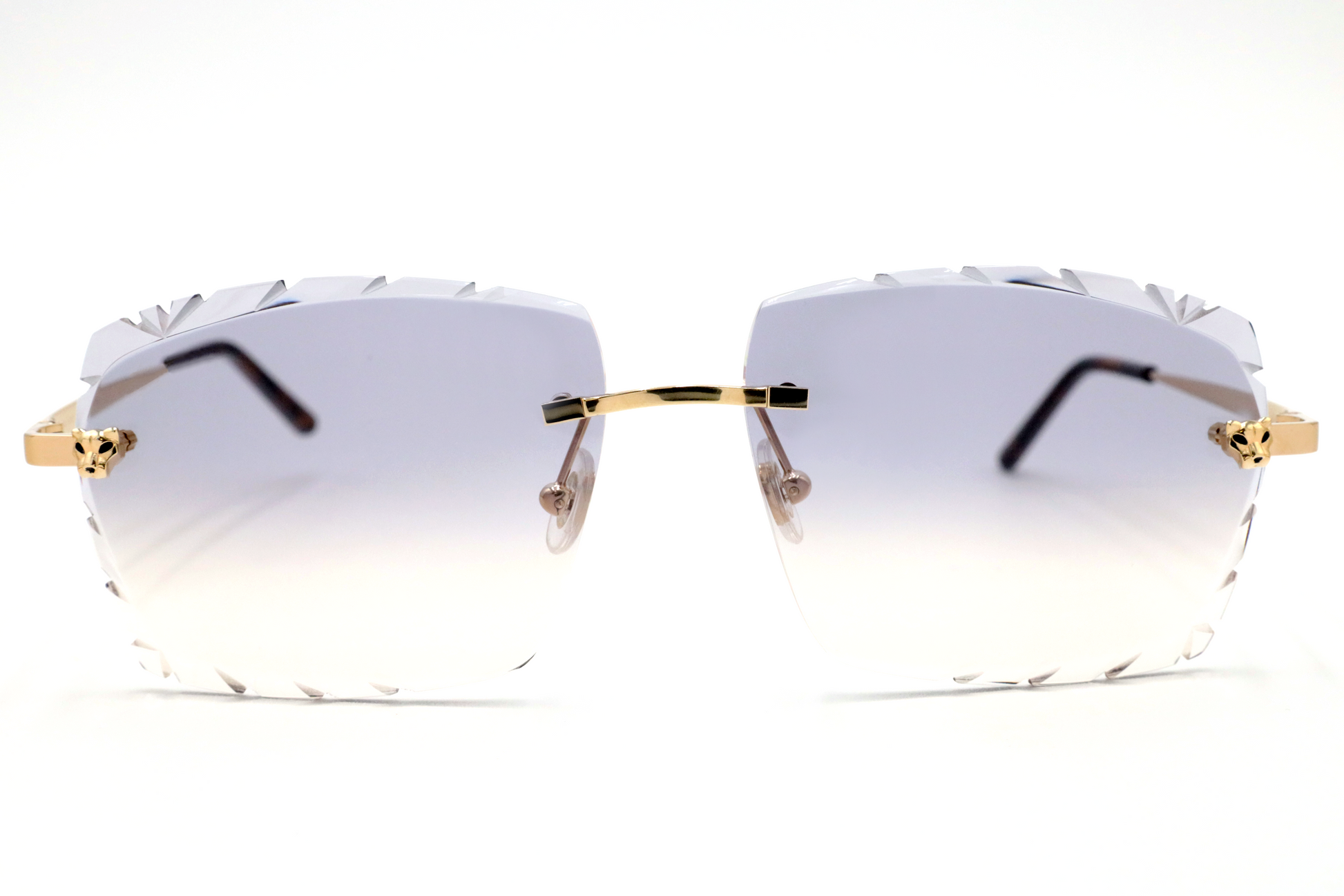 A sophisticated rimless rectangular shape with the pivotal Panthère de Cartier. A three-dimensional Panthère head decorated with skillfully placed black lacquer adorns the lenses. The incredibly light and flexible frame allows for great comfort and durability while maintaining structural integrity and the level of elegance befitting Cartier.
