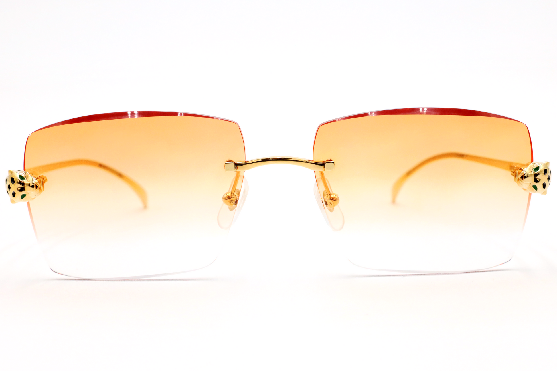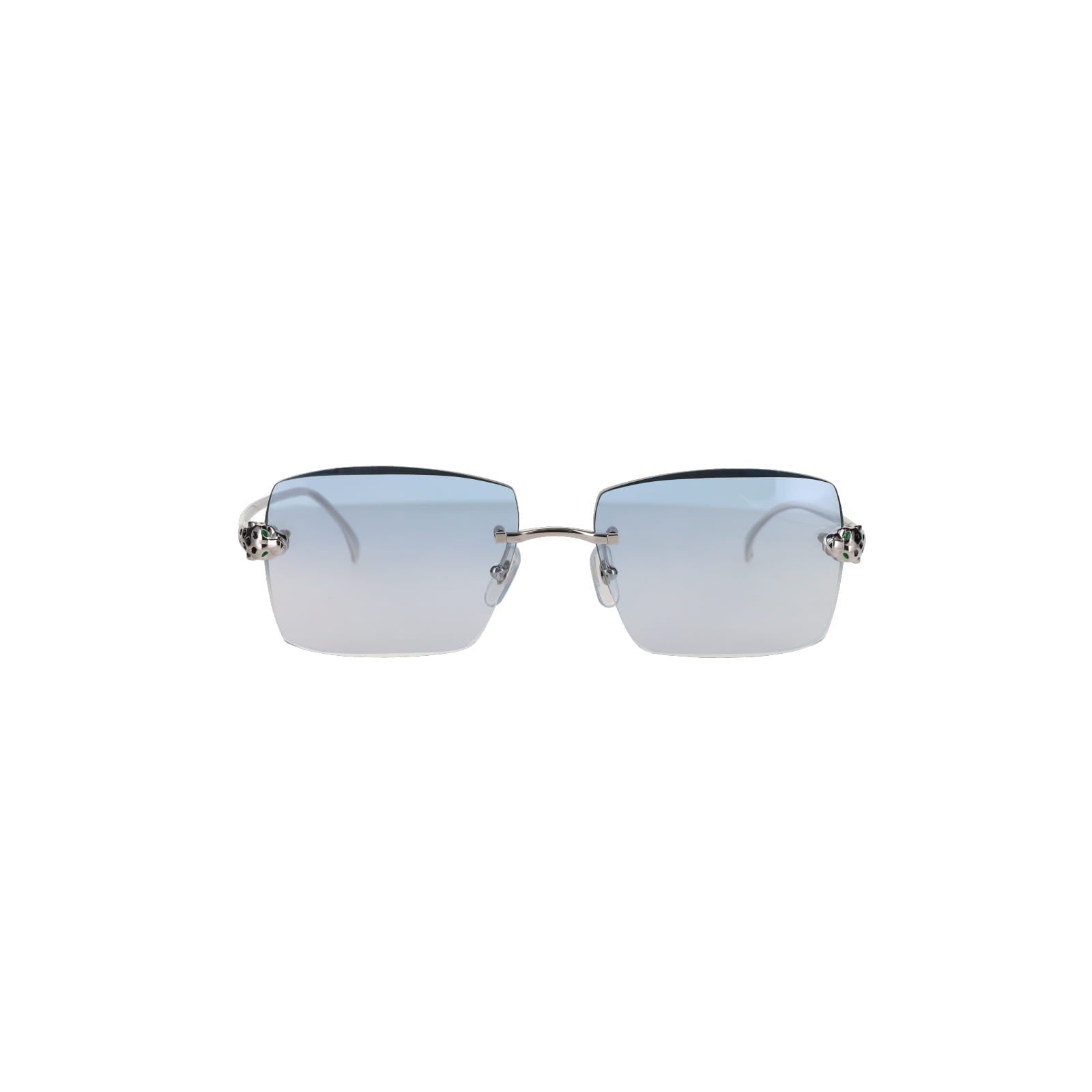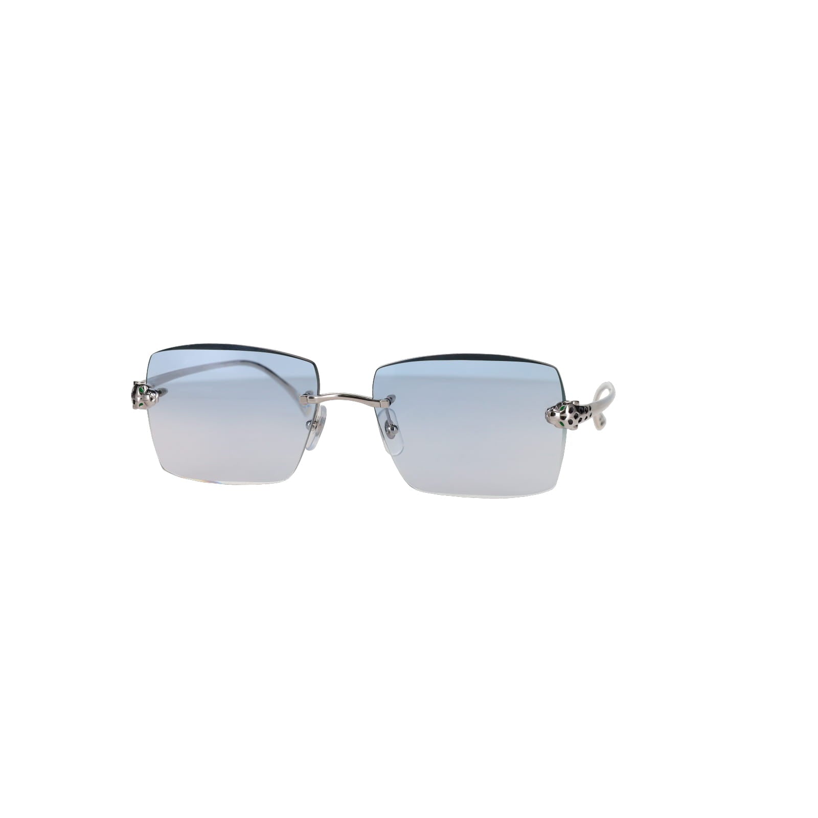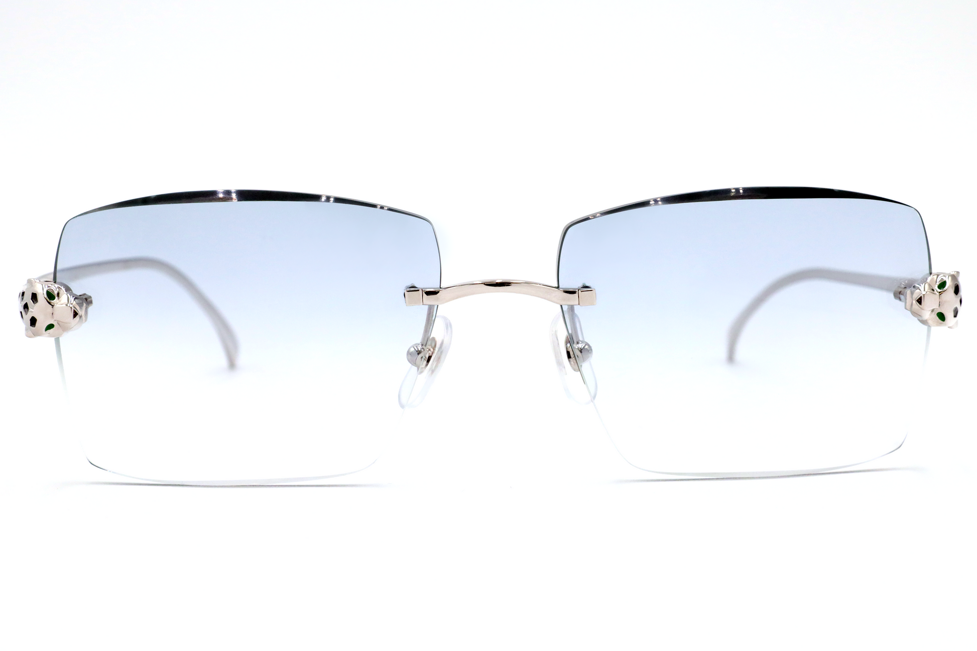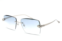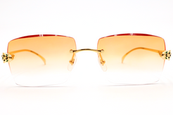 As one of the most iconic jewelry brands in the world, Cartier represents pure luxury. These platinum plated rectangular sunglasses feature tints from a lighter to darker shade, innovative three-dimensional Panthère heads on the front, with hand-made enamel spots on both the front and tips of the temples.