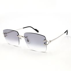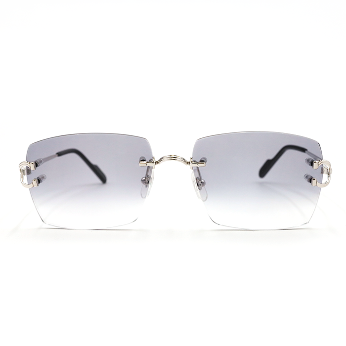 A reimagined interpretation of the iconic metal C Décor with Godron detailing across the whole temple. A modern, rimless design complemented by custom, colorful lenses. The precious finish is in platinum paired with acetate temple tips and embellished with the Cartier logo tag.
