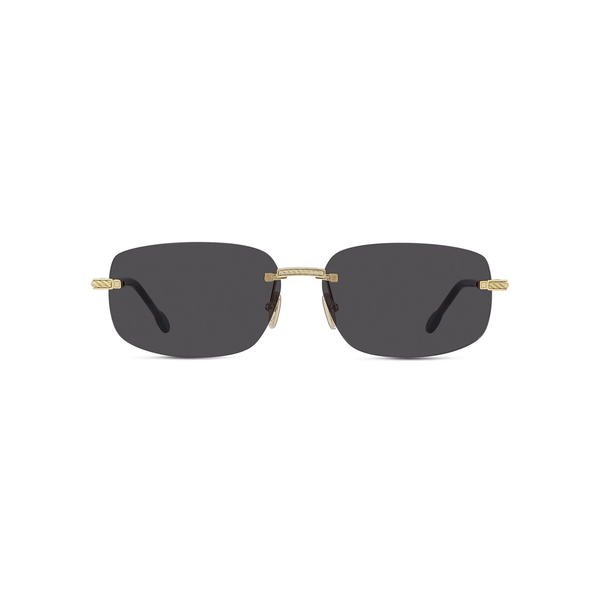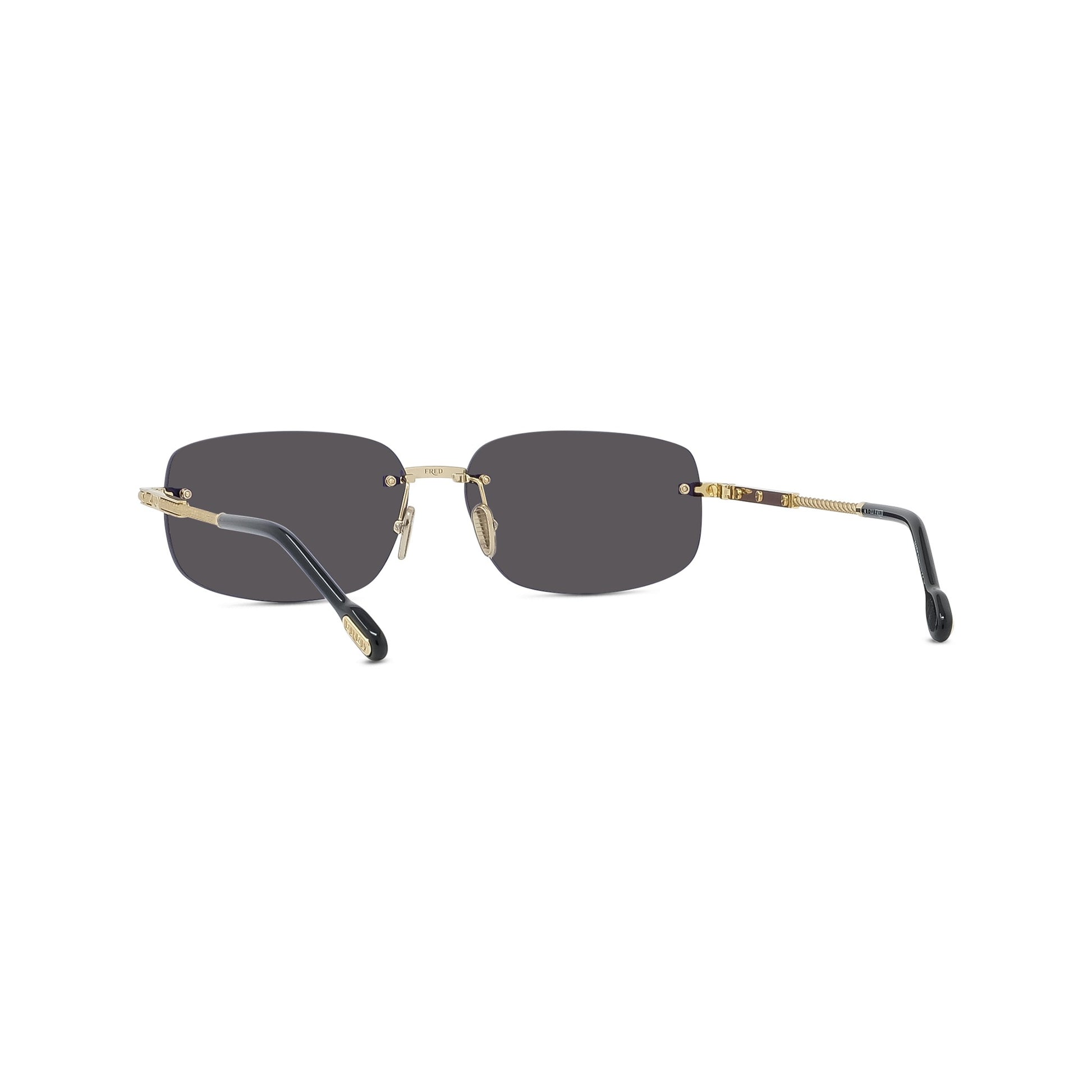 A sauve, rimless design with smoke lenses and golden temples. A piece of FRED's nautical spirit is showcased, with its marine cable temples running through the winch of the hinge. Gracefully concluding with black acetate temple tips embellished with the FRED logo.