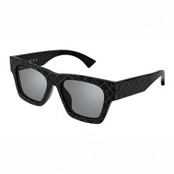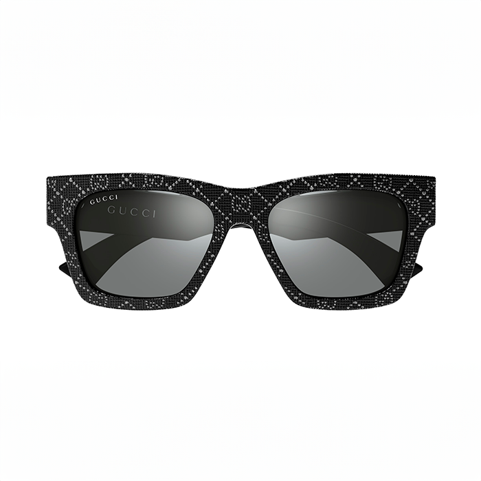 A bold squared cat-eye shape embellished in crystals in a classic Gucci pattern. Dramatic and elegant, this is frame meant to make a statement.