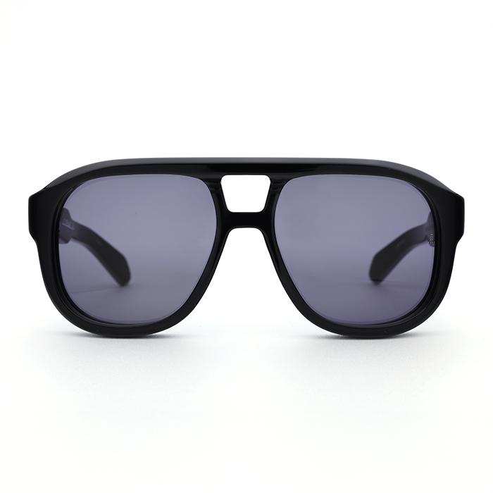 70s-inspired aviators in sleek black acetate featuring a soft double-bridge. Hairline details and subtly wrapped temple tips, along with gunmetal front pins elevate this elegant, timeless piece. Sculptural and sensual.