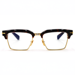 A seriously sophisticated frame of unparalleled quality. These 50s-inspired eyeglasses are cool and collected with a restrained yet refined design. The striking acetate brow provides stunning contrast with the sleek, titanium lens rim and temples.