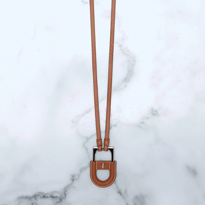 An exquisite eyewear necklace handcrafted in Italy from responsibly sourced leather. The stirrup shaped pendant features a special eyewear hitch and JMM's signature arrowhead plated in silver. A limited edition collectible like no other.