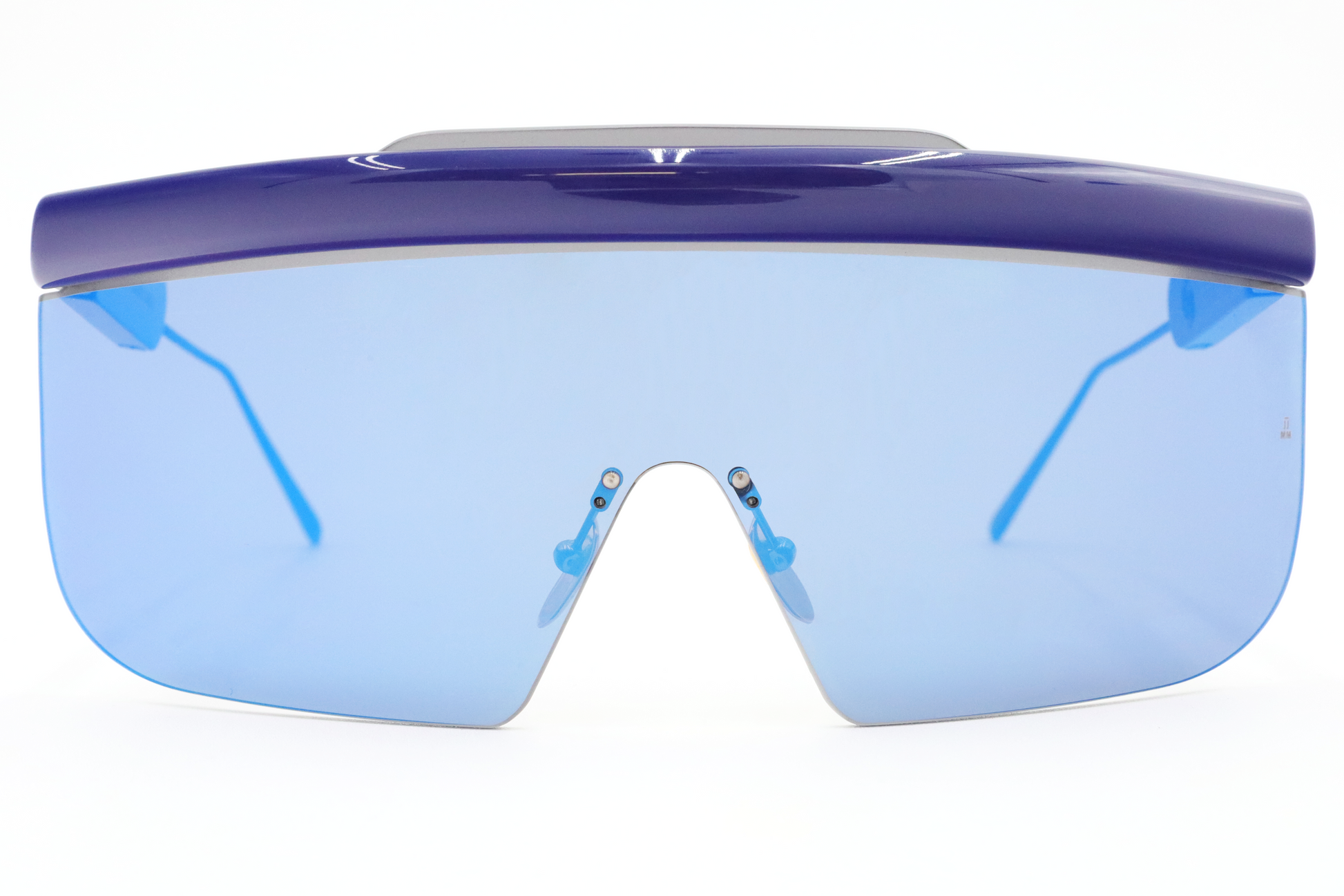 Show-stopping, shielded sunglasses in bright cobalt blue. The titanium temples feature concealed hinges with an innovative tight-lock folding system while the nose bridge is crafted from acetate with adjustable nose pads to ensure comfort. Named after famous Halston muse, Connie Cook, these avant-garde, blue mirrored shades resonate reimagined glamour.