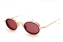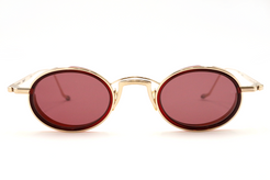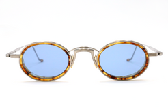 Refined, lightweight oval spectacles rich with intricate design. Colored acetate eye rim inserts, integrated side shields, a distinct double nose bridge, and hand-painted epoxy temple tips distinguish this breathtaking frame. An iconic piece meant to be treasured for life.