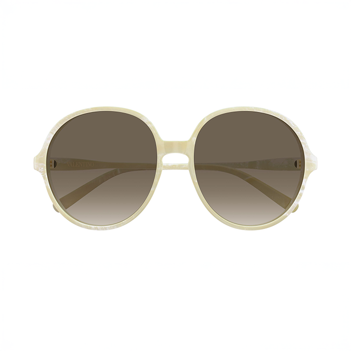 A lightweight construction crafted from sleek acetate. The rounded oval silhouette gives a vintage appeal, while a three-dimensional metal logo embellishes the temple for a sophisticated Valentino signature.